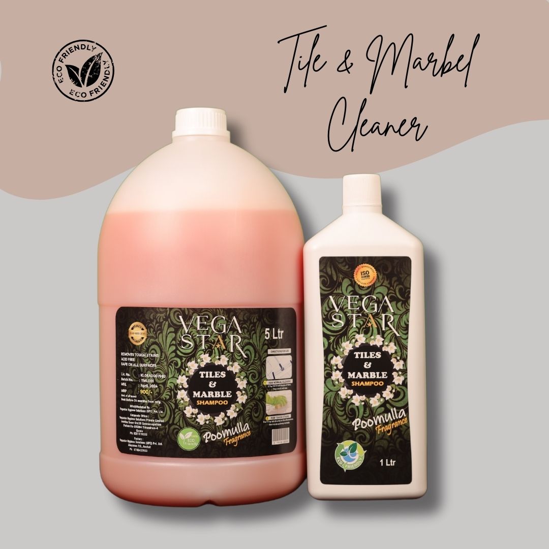 Introducing Vegastar Tiles & Marble Cleaner – an eco-friendly solution for pristine, gleaming surfaces. Formulated with biodegradable ingredients, it effectively removes dirt, grime, and stains from tiles and marble while being gentle on the environment. Free from harsh chemicals, our cleaner is safe for your home and helps maintain the natural beauty of your surfaces. Packaged in recyclable materials, Vegastar Tiles & Marble Cleaner supports a sustainable lifestyle. Enjoy the fresh, natural scent and superior cleaning performance of Vegastar Tiles & Marble Cleaner. Clean surfaces, clean conscience, clean planet.